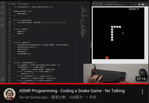 此時開始印證我的想法,萬事具備只欠東風,突然下面條影片出現。內容就是寫一個簡單的貪吃蛇遊戲,全程沒有說話,沒有複雜的剪輯。就在這個時候,腦袋的開關被打開了。