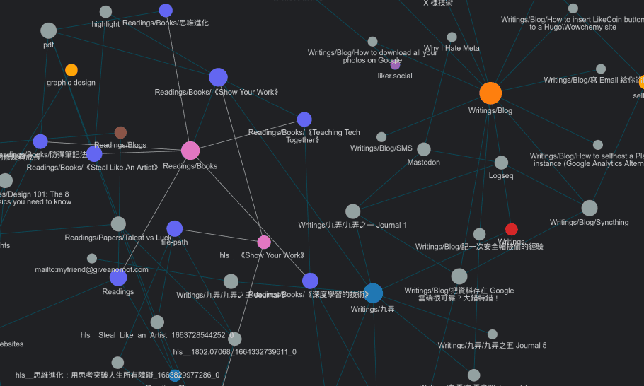 我就不去一一列出 LogSeq 哪裡好用哪裡不好用,它確實有不少其他軟體難以取代的功能,但它的核心功能 Graph 看起來雖然很華麗,但其實比想像中還要不實用。